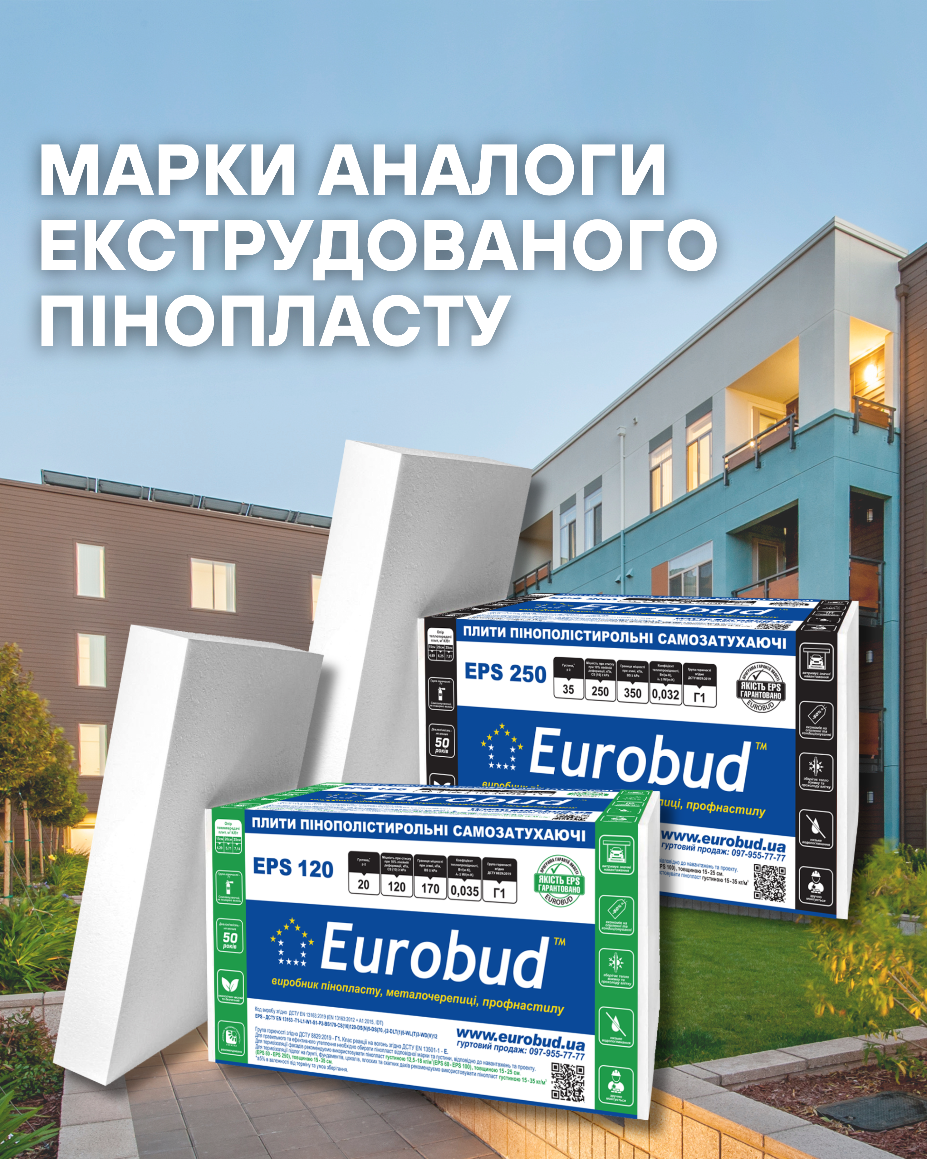 Сучасний EPS 120–250 – це технологічно продуманий і економічно вигідний вибір, який впевнено конкурує з XPS у сферах, де потрібна висока міцність, низьке водопоглинання та ефективна теплоізоляція!